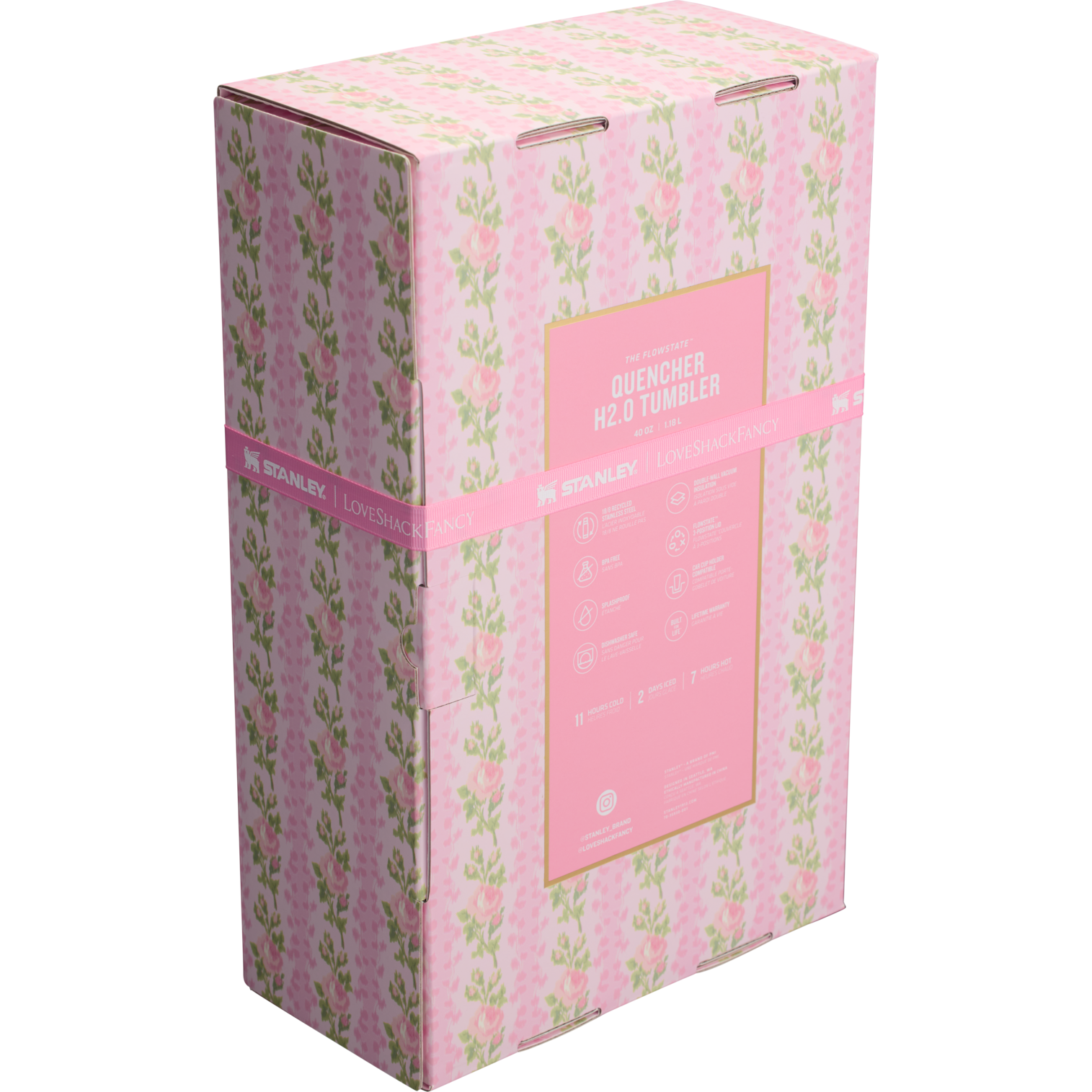 Enjoy your drinks at the perfect temperature wherever you go with this 40oz (1.18L) Stanley Quencher Tumbler. Designed for durability and everyday use, this tumbler features a LoveShackFancy-inspired design for a stylish, playful look.